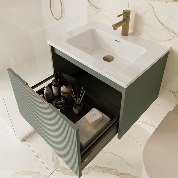 Our Venus Fluted range features a deep square ceramic basin with soft, curvaceous edges. The sleek pull grip units are available in a wide choice of on-trend Foil finishes, with 50, 60 or 80cm options in both one and two drawer styles. Complete the look with coordinating Tall or Low Level WC and Wall Units for a beautifully balanced space.